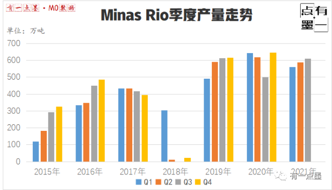 據統計,2020年全年,米納斯裏奧(Minas-Rio)鐵礦石項目共計生產 2410萬噸鐵礦石,較上年增加4%。英美資源集團對米納斯裏奧(Minas-Rio)鐵礦石項目2021年全年產量指導為2400萬噸。根據英美資源集團的計劃,預計到2022年,該鐵礦項目的年產能將達到設計最大閾值2650萬噸。