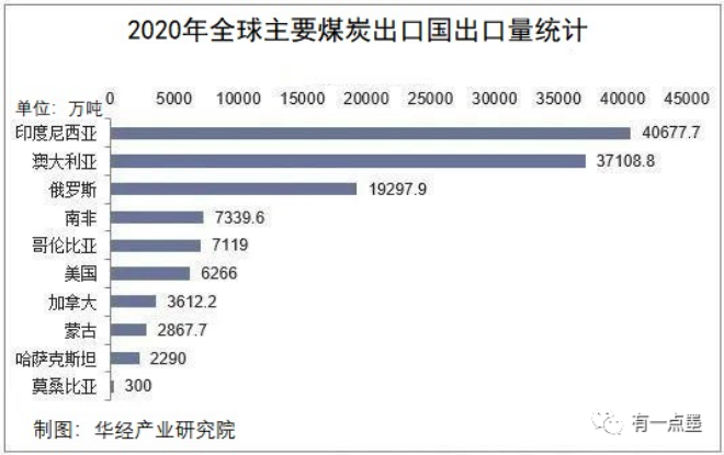 2021年印尼煤炭產量預計為6.09億噸,高於去年的5.5億噸產量目標;出口4.35億噸(2020年產量為5.64億噸,出口4.05億噸),為世界第一大煤炭出口國。根據Bancosta統計,全球2020年煤炭(焦煤和動力煤)海運量為11.3億噸。