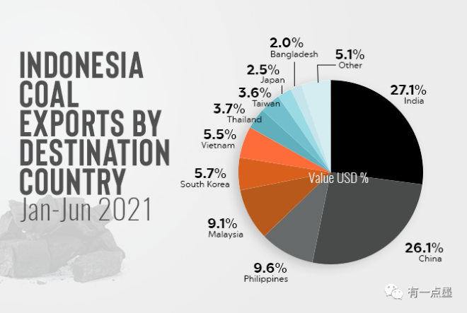 2021年上半年印尼煤炭出口金額分國別占比
