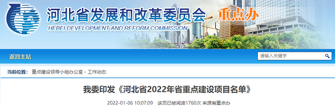 2022年1月6日,河北省發展改革委員會網站發布了《河北省2022年省重點建設項目名單》。