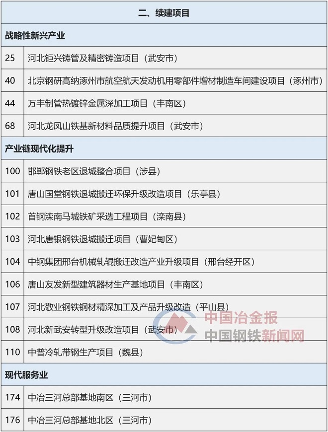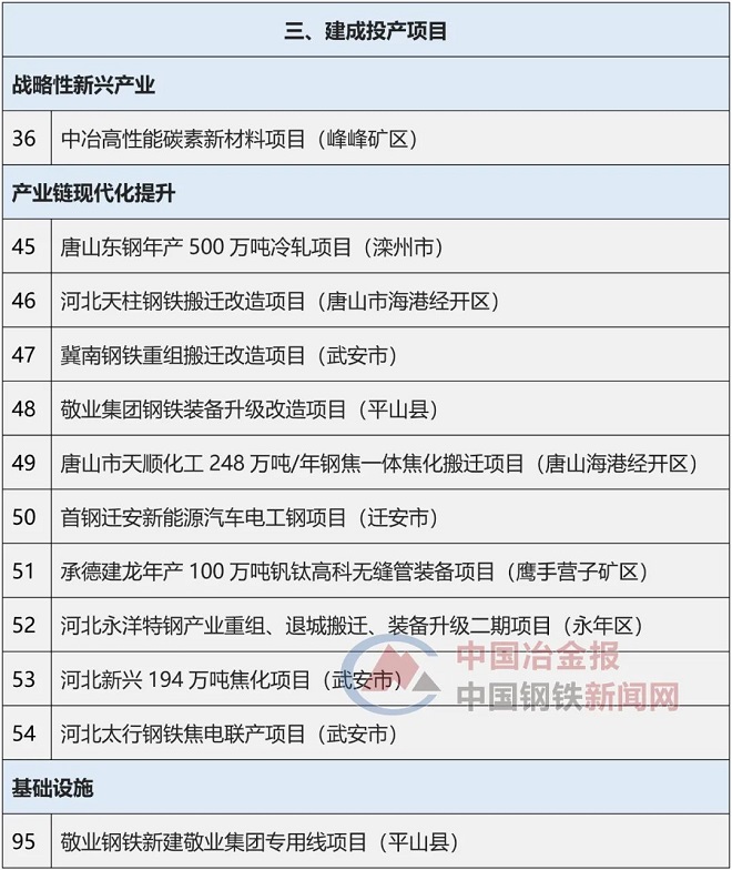 53大鋼鐵項目上榜《河北省2022年省重點建設項目名單》
