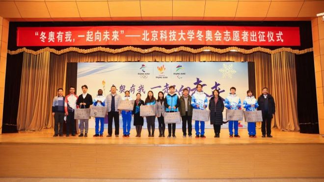 隨著冬奧誌願者歌曲《一起向未來》的優美旋律,北京科技大學冬奧會誌願者出征儀式在教職工禮堂拉開帷幕。參與儀式的領導有校長楊仁樹、黨委副書記於成文、冬奧誌願者工作專班成員、各學院負責人及289名賽會誌願者、107名城市誌願者,儀式由校團委副書記於林民主持。