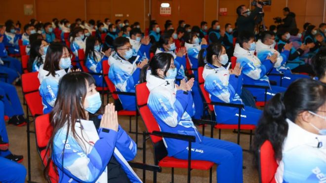 儀式的末尾,全體誌願者在主持人的帶領下莊嚴宣誓。在擲地有聲、高亢激昂的承諾中,儀式圓滿落幕。而屬於誌願者們的征程才剛剛開始,期待他們在冬奧會的卓越風姿,也期盼他們凱旋歸來!