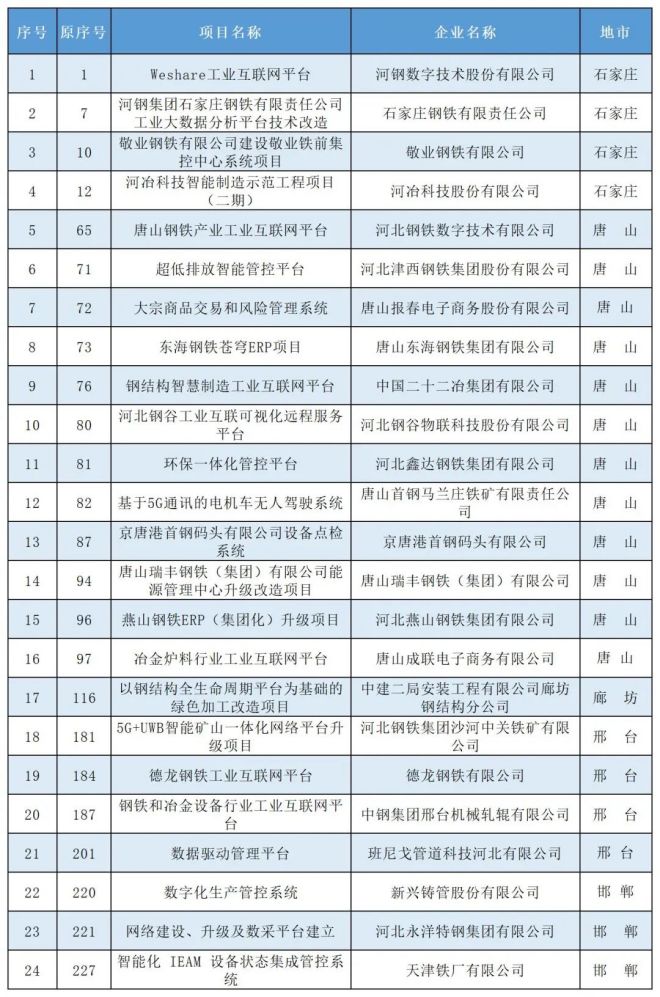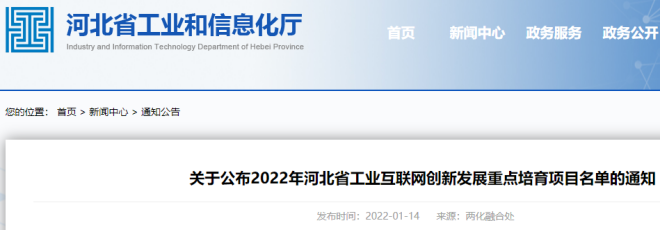 為推動河北省工業互聯網創新發展,促進工業轉型升級,1月14日,河北省工業和信息化廳網站發布2022年河北省工業互聯網創新發展重點培育項目名單。河鋼數字技術股份有限公司“Weshare工業互聯網平台”等238個項目入選,其中,新模式應用類項目204個,行業(區域)工業互聯網平台27個,工業互聯網平台應用創新體驗中心7個。