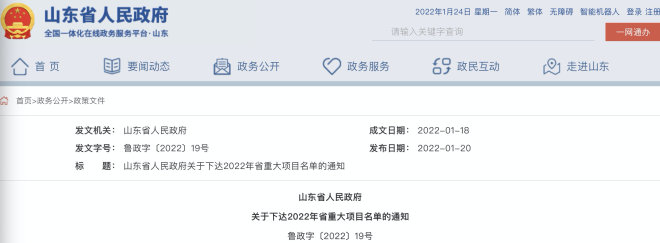 2022年1月20日,山東省人民政府網站發布了《關於下達2022年省重大項目名單的通知》(以下簡稱“《通知》”)。從《通知》中獲悉,2022年省重大實施類項目名單共449項,其中涉及鋼鐵相關共6項;2022年省重大準備類項目名單共151項,其中涉及鋼鐵相關共4項,具體情況如下——