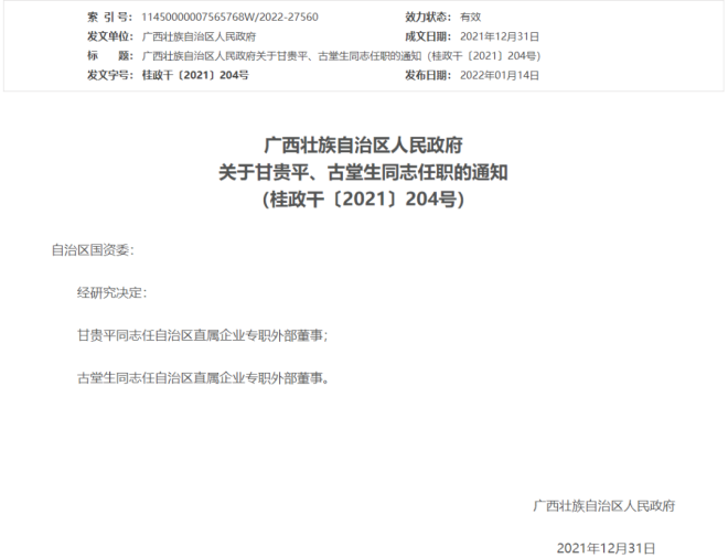 近日,廣西壯族自治區人民政府網站發布了有關柳鋼集團的人事信息:潘世慶同誌任自治區國資委主任;免去甘貴平同誌的廣西柳州鋼鐵集團有限公司副董事長、總經理職務,任自治區直屬企業專職外部董事。