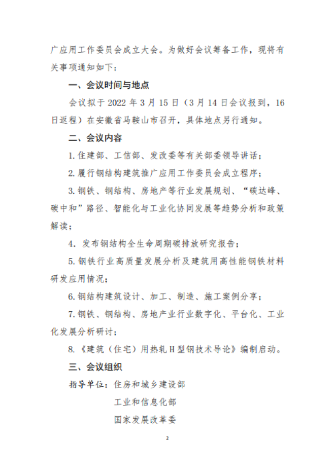 關於召開鋼結構建築推廣應用工作委員會成立大會的預通知