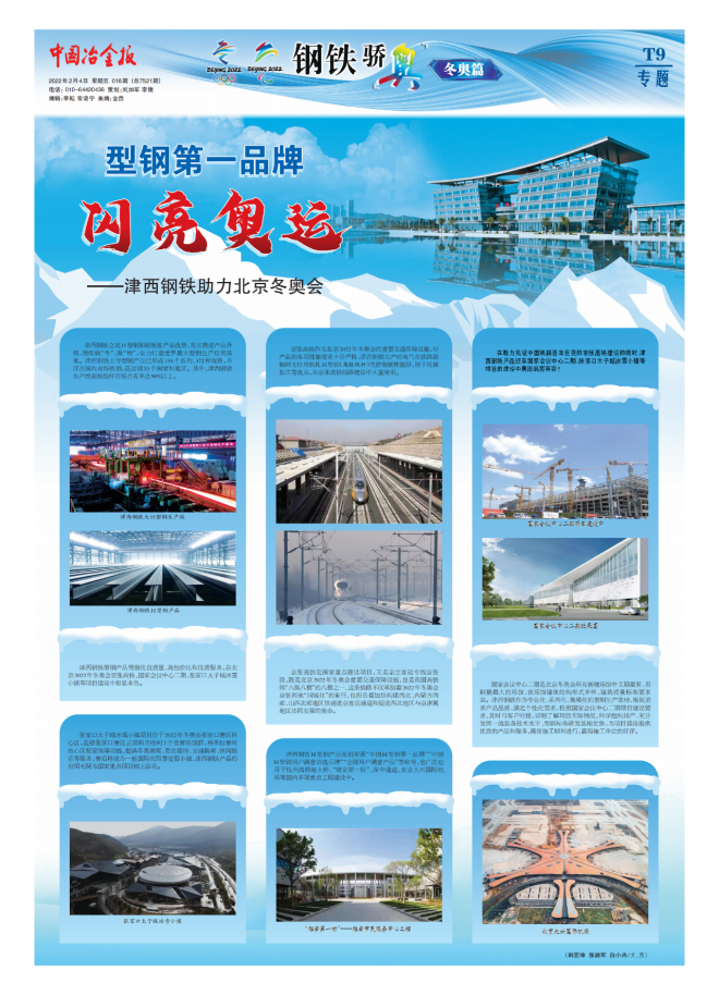 津西鋼鐵型鋼產品憑借優良質量、高性價比和優質服務,在北京2022年冬奧會京張高鐵、國家會議中心二期、張家口太子城冰雪小鎮等項目建設中彰顯本色。