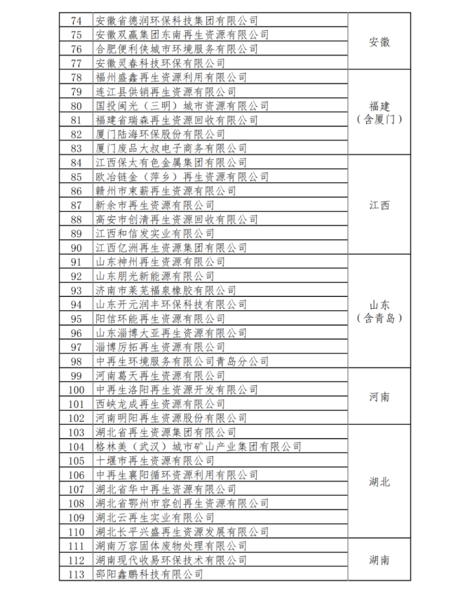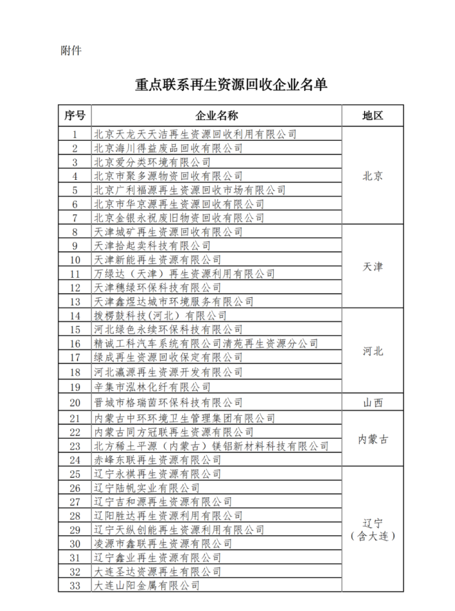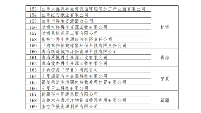 第40號公告的下發,對再生資源虛開發票泛濫的問題提供了政策引領,此公告下發的第二天,國家商務部發布了《關於重點聯係再生資源回收企業名單的公示》,其中涉及符合最新資源綜合利用增值稅政策的169家再生資源回收企業。詳見如下名單: