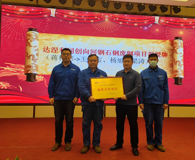 在驗收儀式上,石鋼廢鋼項目部向達涅利同創授予“最佳實施創新團隊”的光榮稱號,同時,達涅利同創與石鋼廢鋼項目部作為“最佳合作夥伴”合影留念。這也標誌著雙方願一同繼續夯實合作基礎,建立長期、穩固、xietongfazhandezhanlvehezuoguanxi,jixushenhuashuangfangzaishuzihuahezhinengzhizaoshangdehezuo,rangshuangfangdehezuoyinlingxingyefazhanfangxiang,chengweiwoguonaizhiquanqiutegangqiyedianfan。