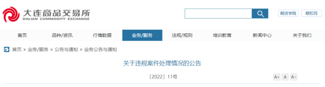 2月21日,大連商品交易所網站發布了《關於違規案件處理情況的公告》(以下簡稱“《公告》”)。《公告》公布了近期調查審理的7起違規案件,9名違規客戶被實施紀律處分。
