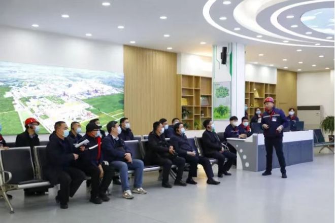 劉大山一行抵達公司後,深入現場先後參觀了遊客中心、五維一體環保管控中心、鋼鐵俠客島、132封閉料場、230㎡燒結機等現場。參觀過程中,劉國旗向劉大山一行介紹了公司各工序排放指標、環保設施運行等情況。