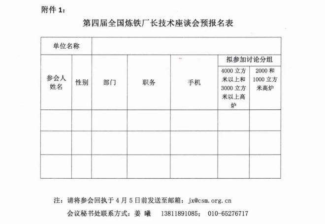 2. 2021年各企業煉鐵生產技術總結交換材料Word版本。各單位需提供本企業交換材料,會議期間交流下發各生產單位。接收材料聯係人:薑曦 13811891085;;