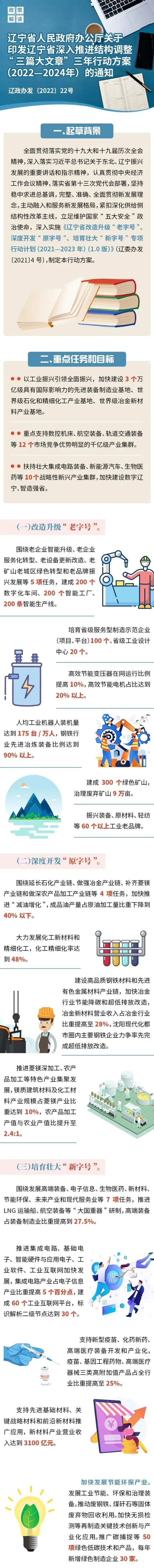 做好改造升級“老字號”、深度開發“原字號”、培育壯大“新字號”結構調整“三篇大文章”,是習近平總書記對東北振興、遼寧振興提出的明確要求,是維護國家“五大安全”的重要舉措。近日,遼寧省工信廳網站對《遼寧省深入推進結構調整“三篇大文章”三年行動方案(2022—2024年)》(以下簡稱《方案》)的具體內容進行了解讀。