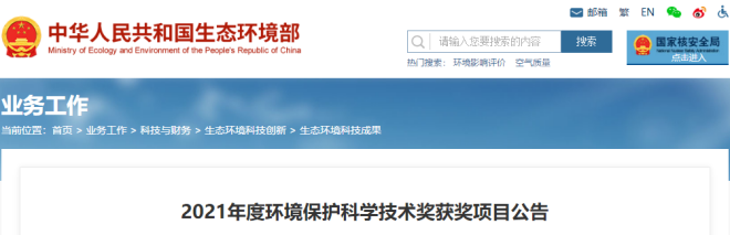 近日,生態環境部網站發布了《2021年度環境保護科學技術獎獲獎項目公告》(以下簡稱“《公告》”)。