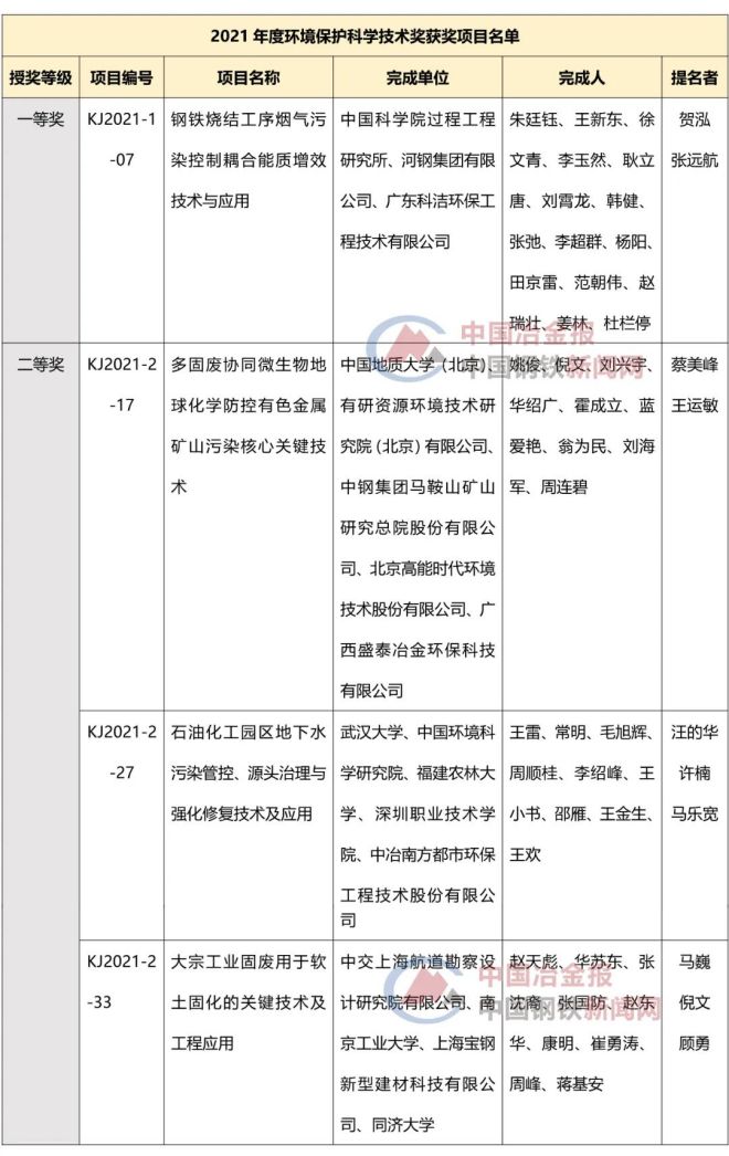 這些鋼企獲2021年度我國環保科技領域重大獎項