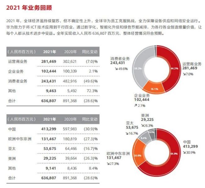 先來看華為2021年“成績單”: