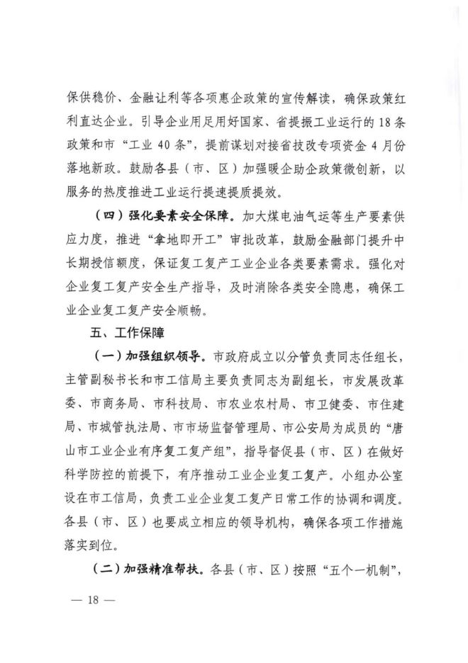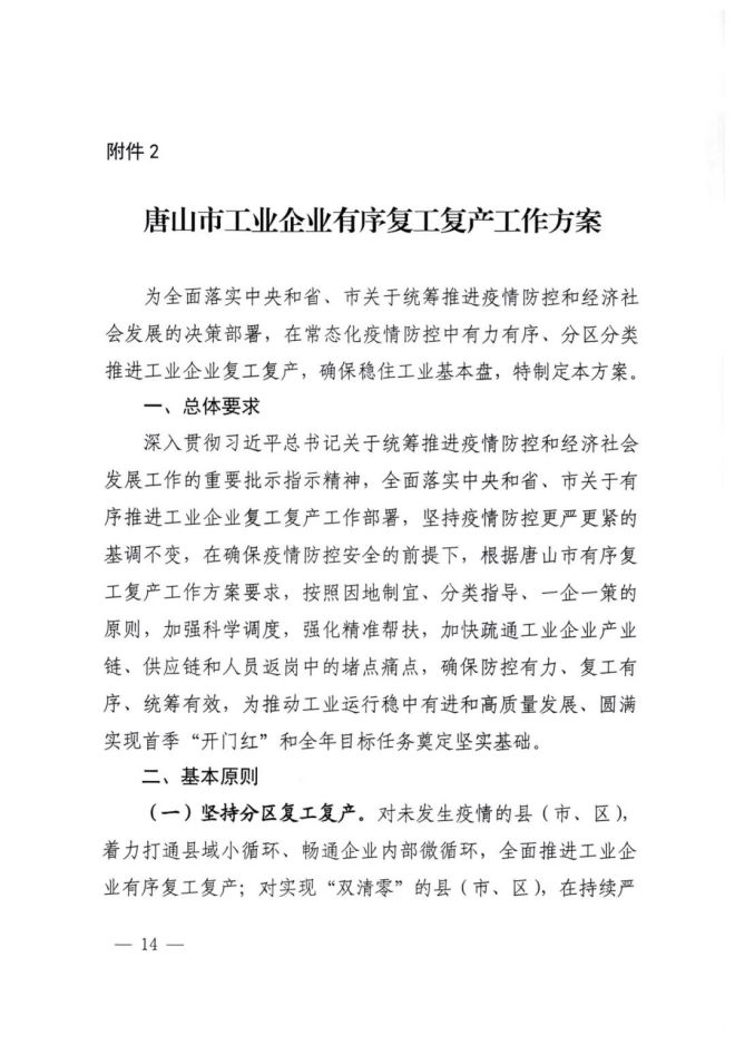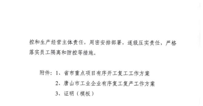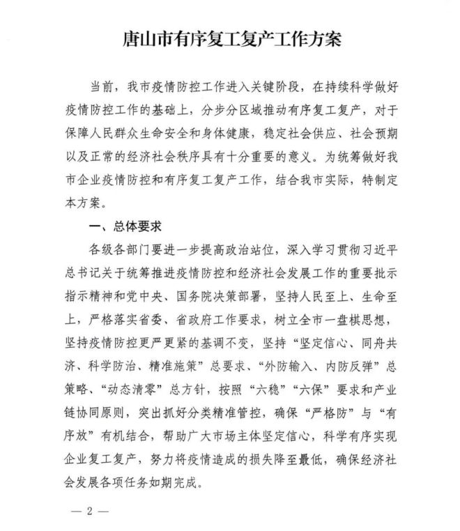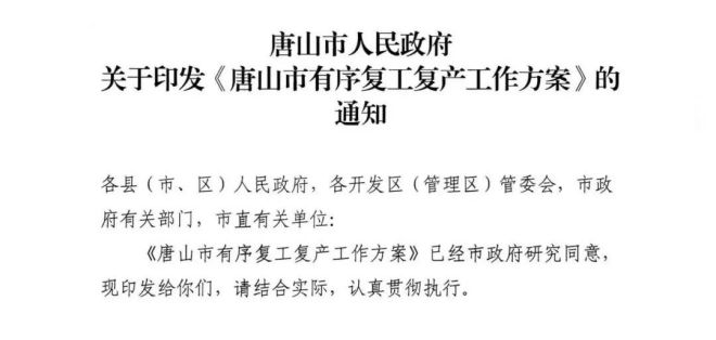 近日,唐山逐步解封,全力推進複工複產!唐山市人民政府關於印發《唐山市有序複工複產工作方案》的通知全文如下——