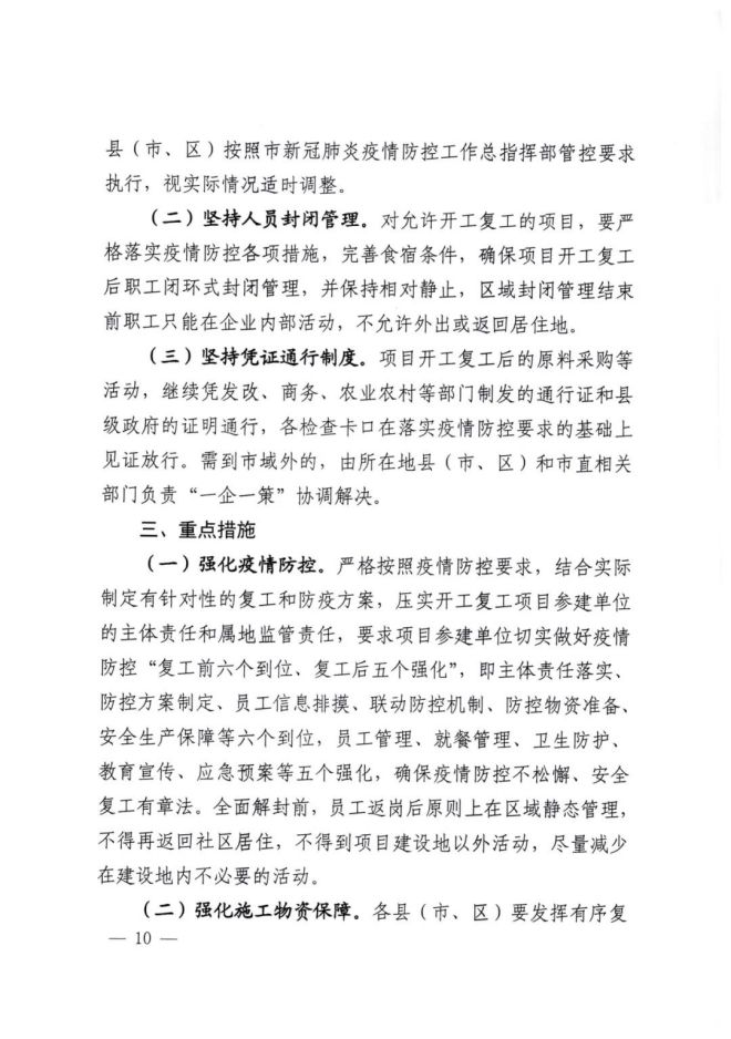 9.工業企業、建築工地要係統做好防控準備工作,盡可能封閉管理,可以開工。需要指導和服務的,與屬地和行業主管部門聯係。