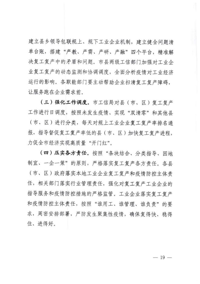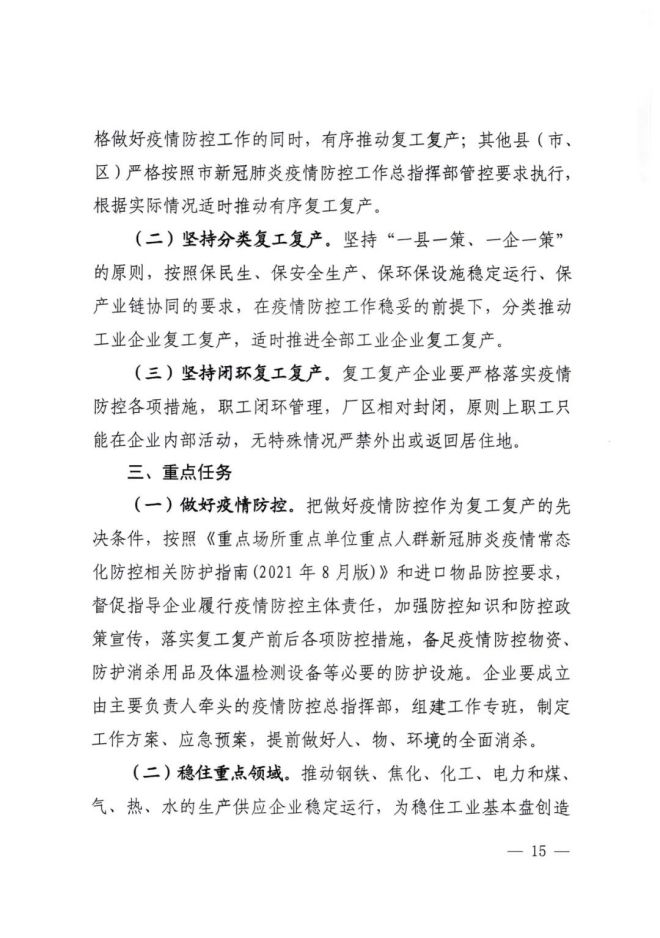 企業職工跨縣區流動一律暫停,市域內上下班,要嚴格規定路線,實行兩點一線閉環管理。
