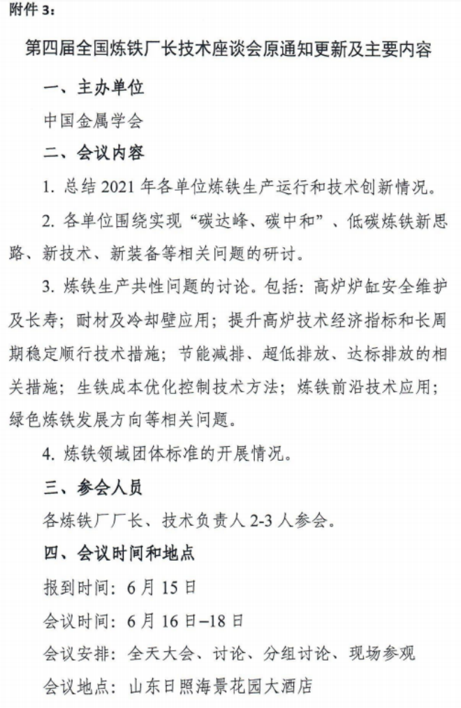 附件3. 第四屆全國煉鐵廠長技術座談會原通知更新及主要內容