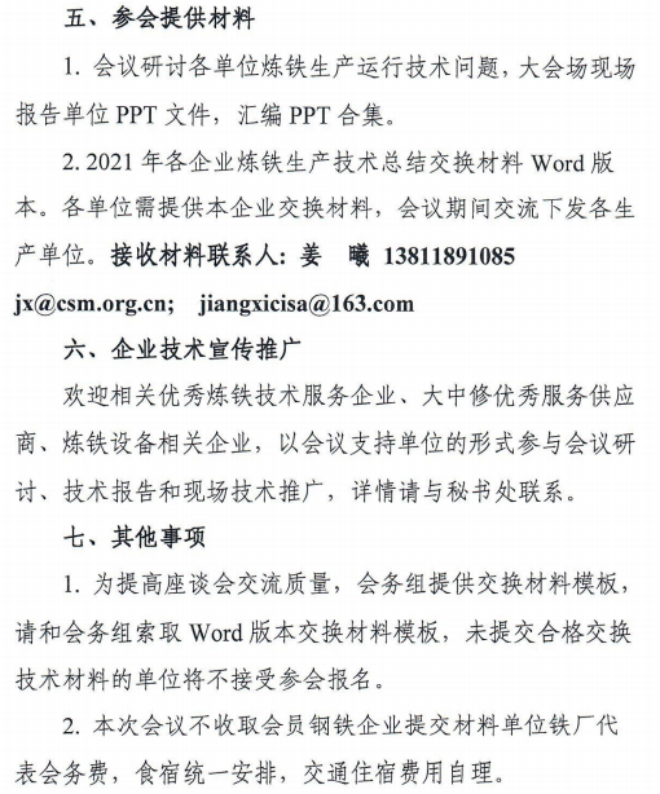 後續相關事宜根據疫情穩控情況安排、落實。已完成參會報名、提供交換材料的單位,繼續有效。未完成參會報名的單位歡迎繼續報名,參會回執、交換材料提綱具體見附件1、2。具體事項可谘詢中國金屬學會會議秘書處。