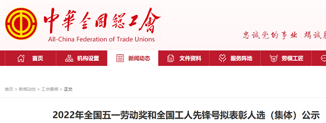 重磅!2022年全國五一勞動獎、全國工人先鋒號擬表彰他們