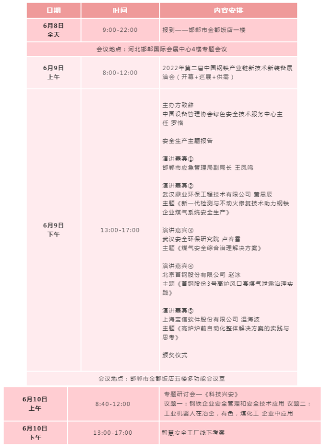 經中國設備管理協會批準,中國設備管理協會綠色安全技術服務中心,定於2022年6月9日在河北省邯鄲市,舉辦2022年冶金安全生產綠色發展高峰論壇(同期召開第二屆中國鋼鐵產業鏈新技術新裝備展洽會)。