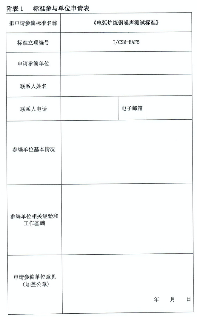為(wei)實(shi)現(xian)鋼(gang)鐵(tie)行(xing)業(ye)企(qi)業(ye)噪(zao)聲(sheng)排(pai)放(fang)監(jian)管(guan),規(gui)範(fan)鋼(gang)鐵(tie)行(xing)業(ye)企(qi)業(ye)噪(zao)聲(sheng)排(pai)放(fang)數(shu)據(ju)管(guan)理(li)等(deng)重(zhong)點(dian)內(nei)容(rong),中(zhong)國(guo)金(jin)屬(shu)學(xue)會(hui)現(xian)麵(mian)向(xiang)會(hui)員(yuan)單(dan)位(wei)及(ji)相(xiang)關(guan)單(dan)位(wei)公(gong)開(kai)征(zheng)集(ji)噪(zao)聲(sheng)測(ce)試(shi)及(ji)監(jian)管(guan)方(fang)麵(mian)立(li)項(xiang)研(yan)究(jiu)及(ji)標(biao)準(zhun)製(zhi)訂(ding)參(can)與(yu)單(dan)位(wei)。參(can)與(yu)單(dan)位(wei)申(shen)請(qing)表(biao)見(jian)附(fu)表(biao)1-3。
