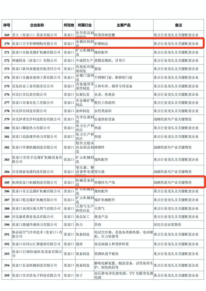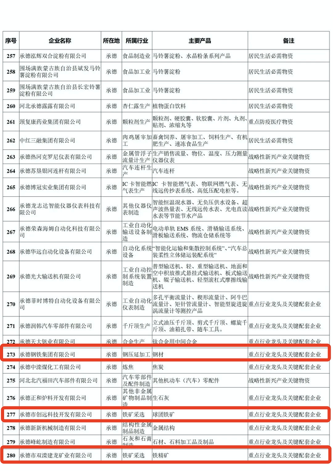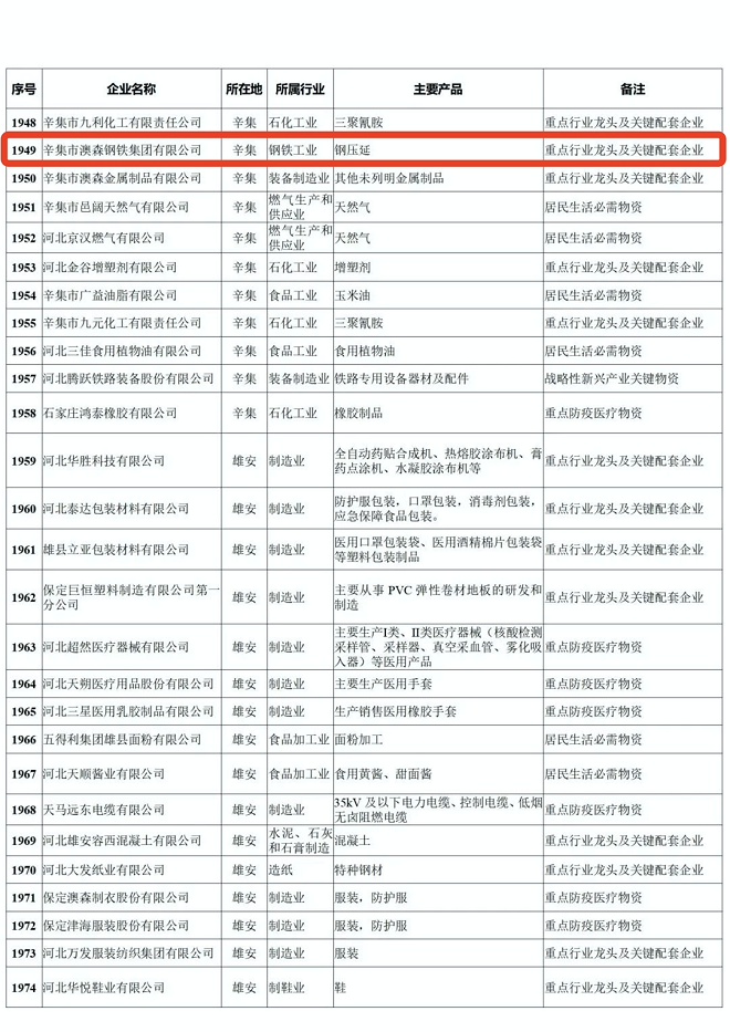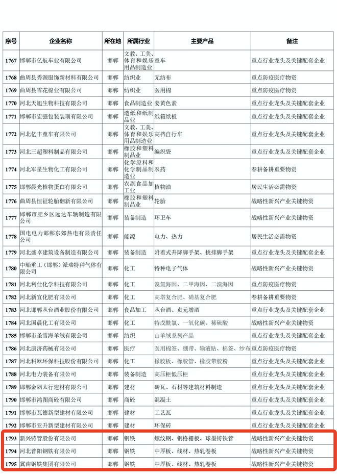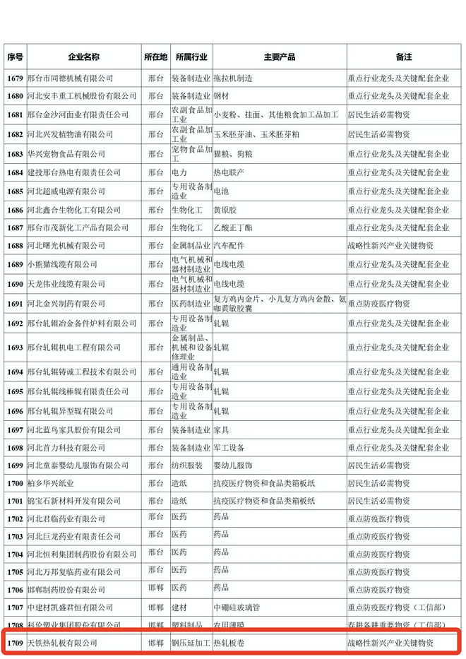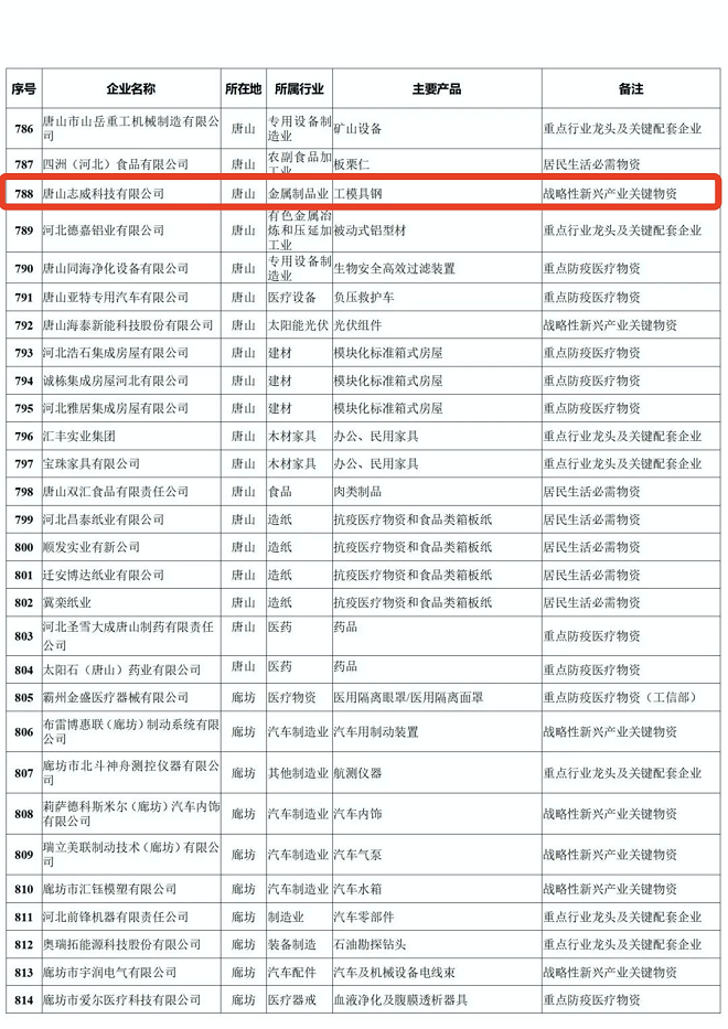 河北省重點產業鏈供應鏈“白名單”企業