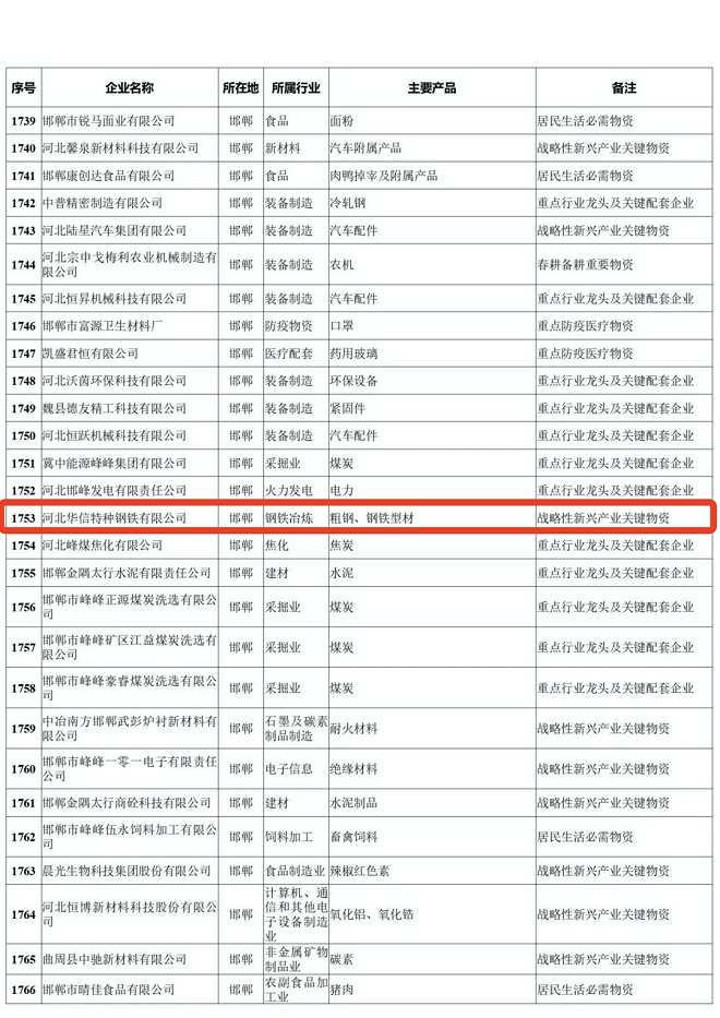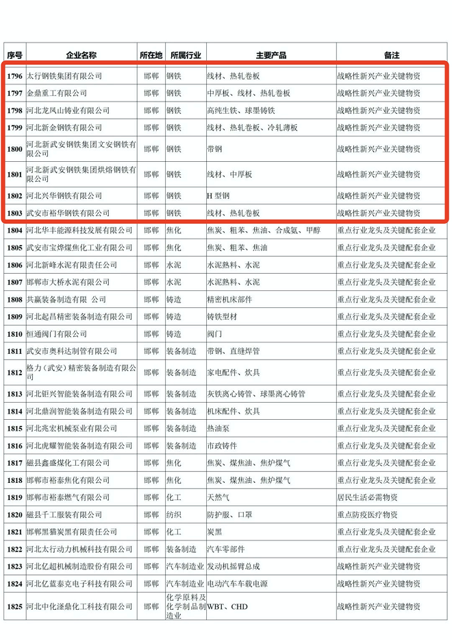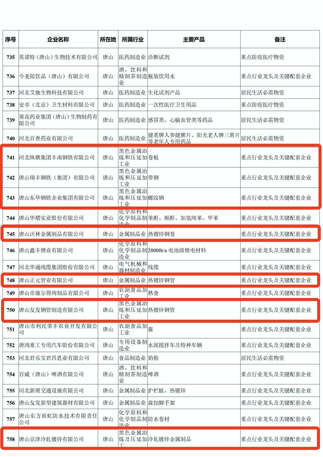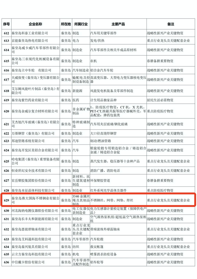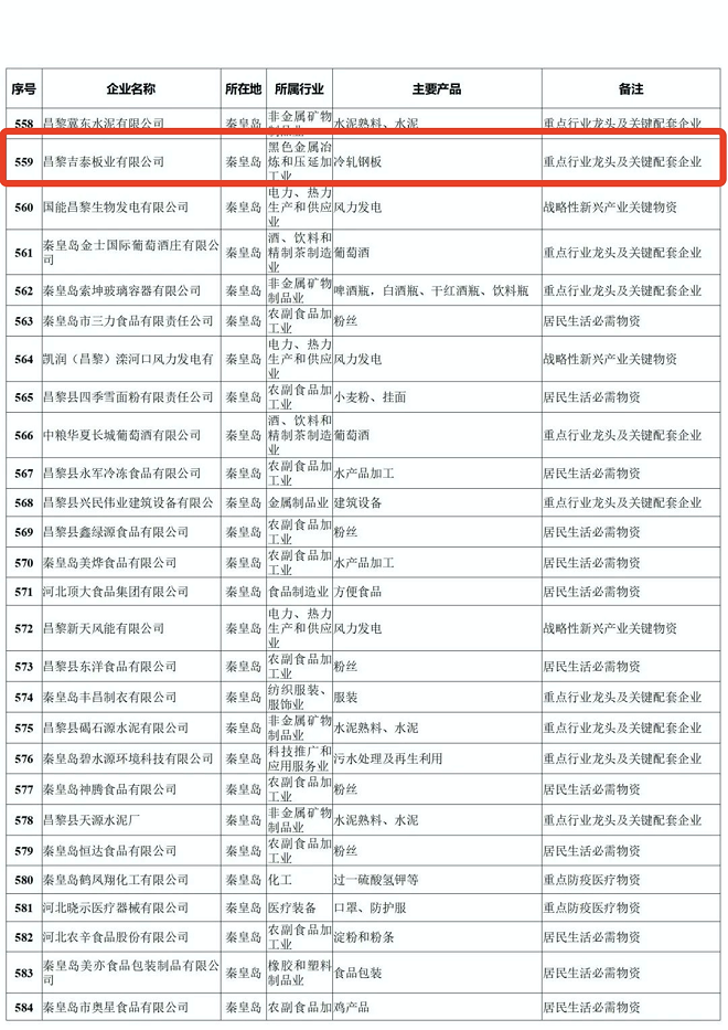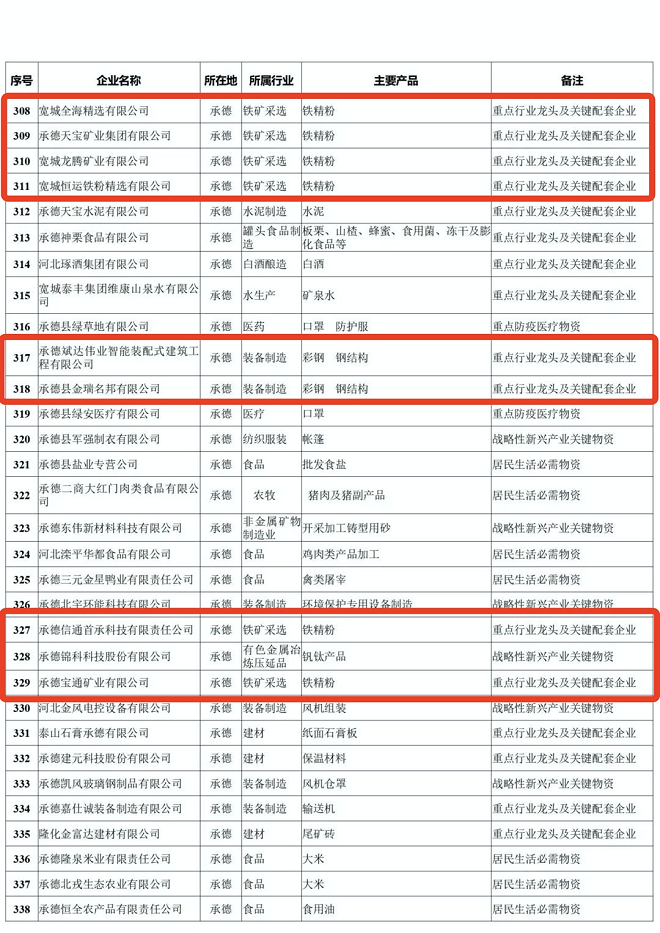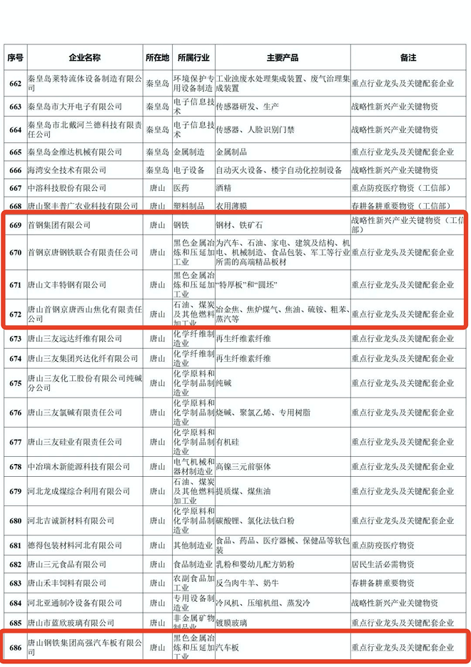 河北省重點產業鏈供應鏈“白名單”企業