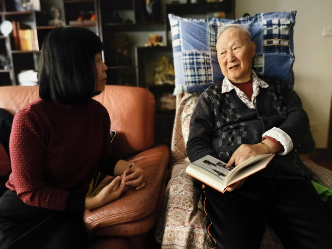 圖為新中國首任能源部部長黃毅誠(右)就能源革命與“雙碳”目標實現與作者交流。(資料圖片)