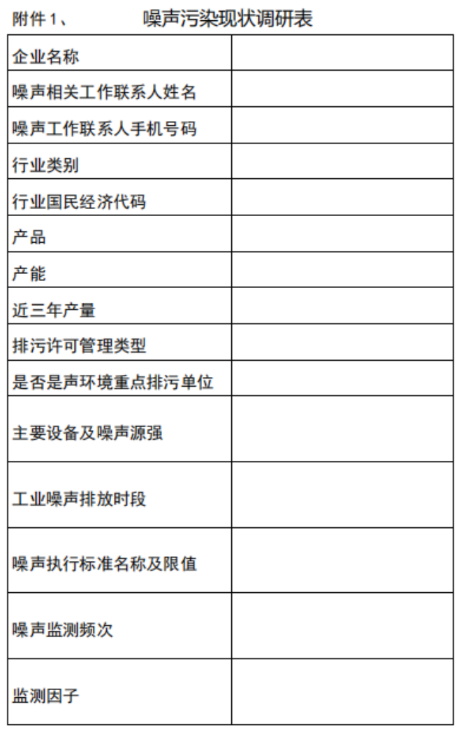 附件1、噪聲汙染現狀調研表
