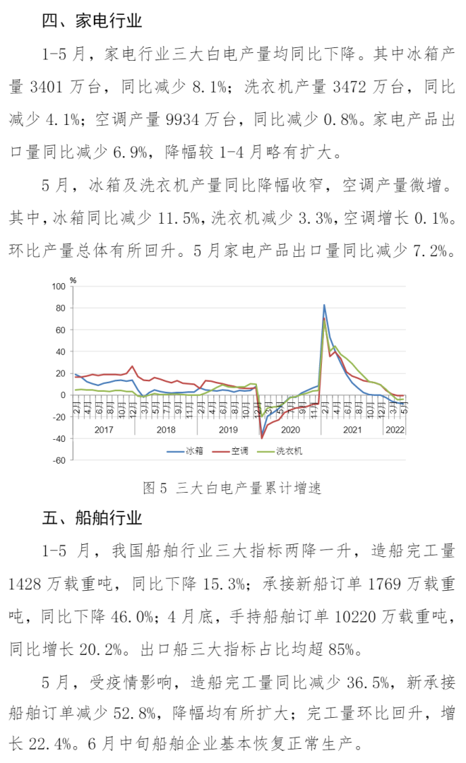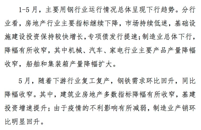 前5個月主要用鋼行業運行總體呈下行趨勢,5月鋼鐵需求環比回升