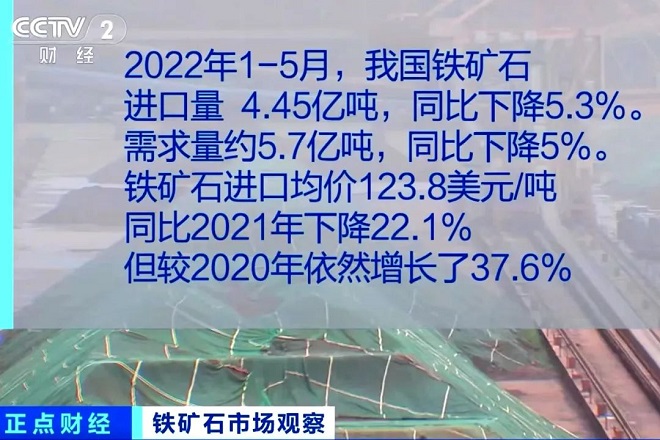 2022年7月6日,中央電視台財經頻道《正點財經》欄目播出新聞“鐵礦石市場觀察:今年進口價格降二成 曹妃甸港庫存低”,冶金工業規劃研究院院長範鐵軍接受記者采訪。
