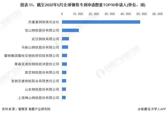 8家中國鋼企入選!全球鋼企專利申請數量TOP10