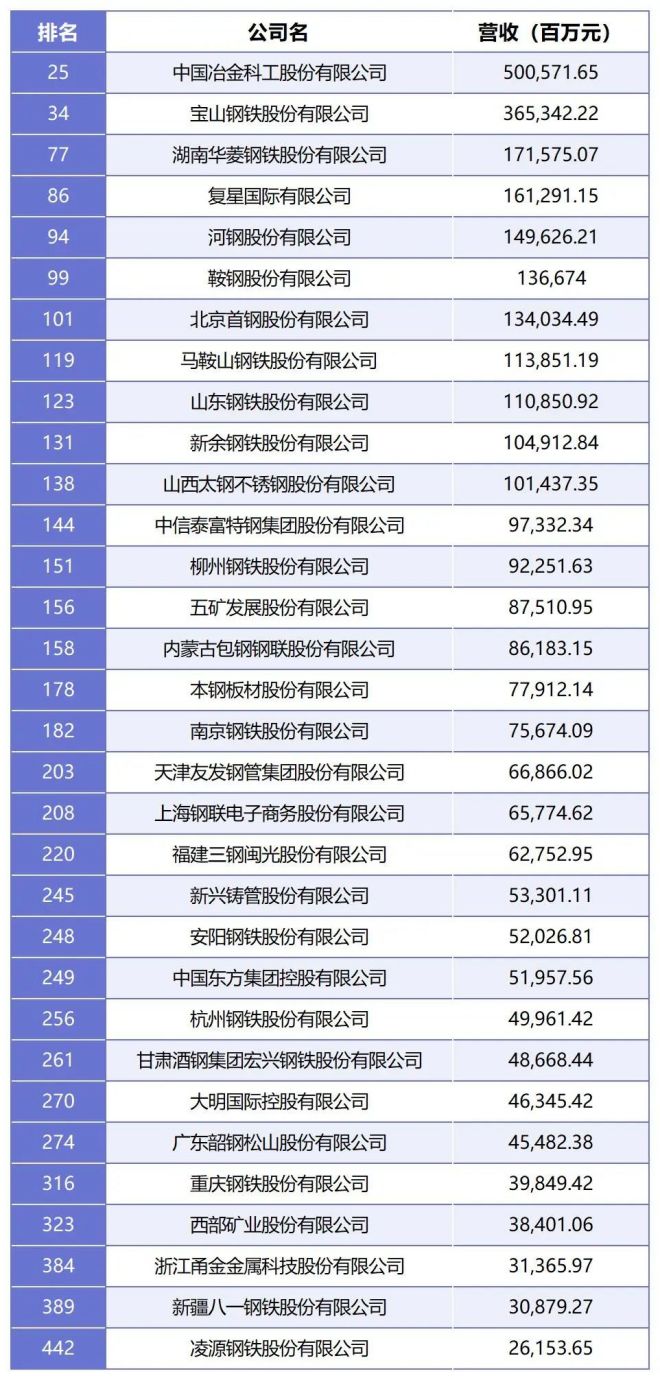2022年《財富》中國500強揭曉!鋼鐵業這些企業上榜