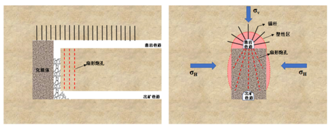 隨sui著zhe開kai采cai深shen度du增zeng加jia地di質zhi環huan境jing嚴yan重zhong劣lie化hua,采cai動dong災zai害hai加jia劇ju,仍reng采cai用yong傳chuan統tong采cai礦kuang方fang法fa及ji落luo礦kuang方fang式shi,極ji易yi造zao成cheng深shen部bu采cai場chang垮kua冒mao,嚴yan重zhong威wei脅xie井jing下xia作zuo業ye人ren員yuan及ji裝zhuang備bei的de安an全quan。針zhen對dui上shang向xiang中zhong深shen孔kong落luo礦kuang極ji易yi造zao成cheng采cai場chang頂ding板ban垮kua冒mao這zhe一yi問wen題ti,開kai發fa了le深shen部bu采cai場chang預yu控kong頂ding下xia向xiang中zhong深shen孔kong落luo礦kuang方fang法fa(圖3),caichangdingbanshoucaidongyingxiangxiao,diyafangkongjianbian,zaoyanhechukuanggongxuketongshijinxing,mibulezaihuicaixiaolvshangdechaju。yuchuantongshangxiangkongluokuangxiangbidiyatiaokongxiaoguogenghao,caichangdingbanshoucaidongguochengyingxiangxiao,gengshiyongyujinshukuangzaihuicaishenbukuangtishishiyong。tongguozaishenbucaichangcaiyongxiaxiangtiduanshishenkongbaopoluokuangjishu,luokuangxiaolvtigao35%,安全性好。研究成果為深部采場落礦提供了新技術。