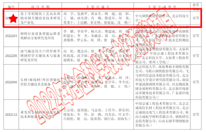 2022年度冶金科學技術獎獲獎名單公布,中信泰富特鋼集團共斬獲7個獎項!