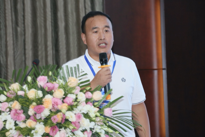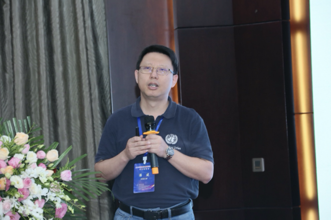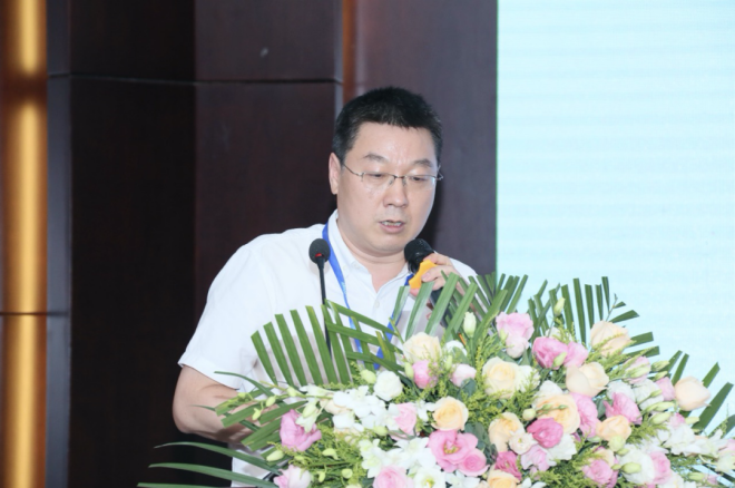 圖為李毅仁作《碳中和願景下河鋼集團低碳發展技術實踐與展望》報告