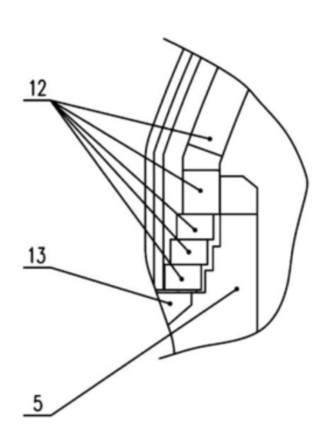 圖4為將擬合懸鏈線拱頂結構與下部熱風出口直段分離,減少疊加應力,穩定長壽結構示意圖