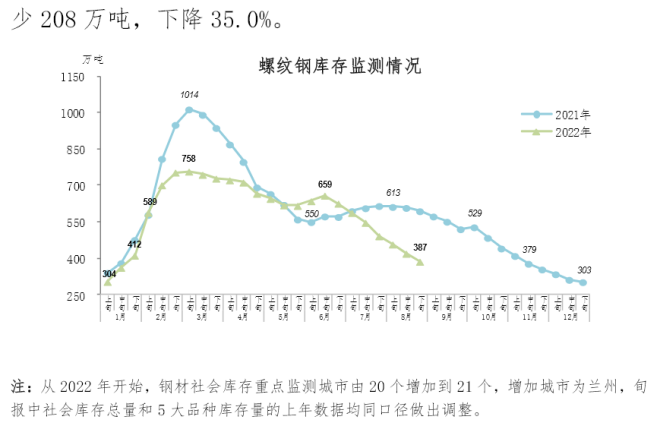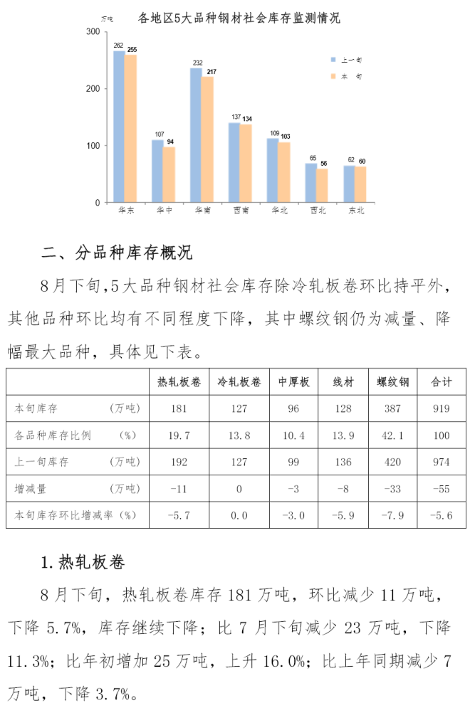 8月下旬鋼材社會庫存919萬噸,環比下降5.6%