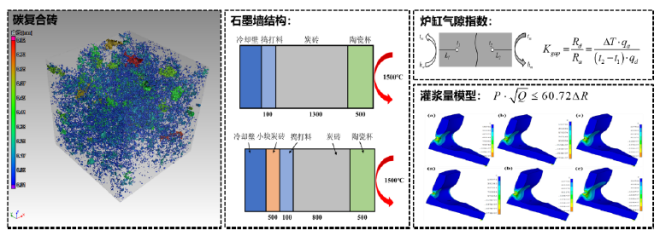 研發了兼具炭磚高導熱與陶瓷材料高耐蝕、且利於石墨碳沉積的碳複合耐火材料;同時開發了解決爐缸氣隙難題的石墨牆結構及氣隙治理優化技術,為石墨碳的析出奠定基礎。
