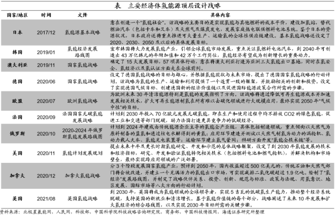 當前,全球多國已經出台氫能頂層設計和戰略路線。根據國際氫能委員會的報告,在全球已有31個國家在國家層麵提出了氫能相關戰略,這些國家占全球GDP的73%。綜合來看,海外各國的國家氫能戰略,首要目標在於盡快脫碳,其次才是增加能源種類,其中澳大利亞、俄羅斯、加拿大等國還有擴大氫能出口的戰略目標。而重點技術領域上,主要集中在降低氫價、發fa展zhan氫qing燃ran料liao交jiao通tong和he工gong業ye脫tuo碳tan上shang。值zhi得de注zhu意yi的de是shi,由you於yu各ge國guo的de資zi源yuan稟bing賦fu存cun在zai差cha異yi,發fa展zhan氫qing能neng的de路lu線xian也ye存cun在zai差cha異yi,例li如ru天tian然ran氣qi資zi源yuan豐feng富fu的de俄e羅luo斯si,就jiu以yi發fa展zhan以yi天tian然ran氣qi為wei原yuan料liao的de藍lan氫qing,而er非fei常chang見jian的de綠lv氫qing為wei主zhu要yao技ji術shu方fang向xiang。