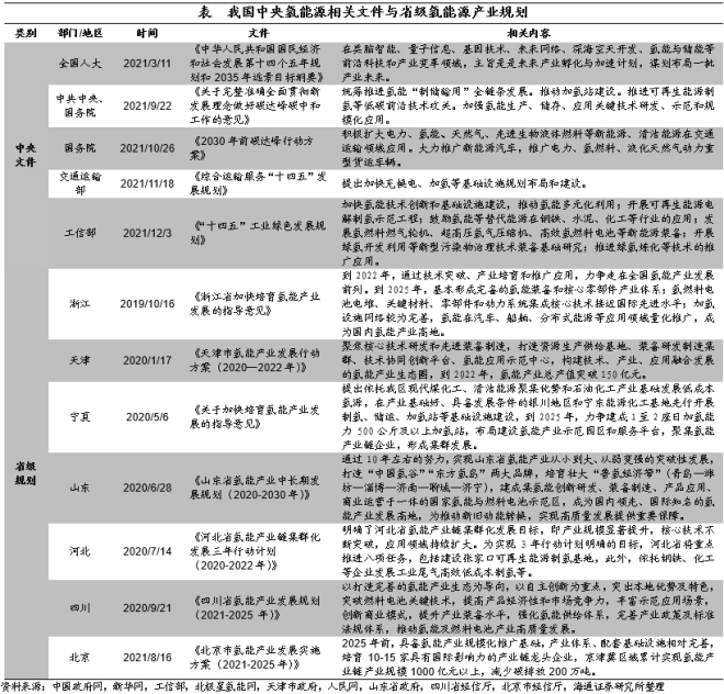 weileshixianzaigonggeiduanpingjiahexuqiuduanguangfanyingyongdemubiao,dangqiannaxieqingnengyuanchanyelingyuhesaidaogengzhideguanzhu?shouxian,womenkeyicankaozhengfubaogaozhongtidaodezhongdianjishulingyu,《2030年碳達峰行動方案》中提到了多項與氫能源相關的行動,如氫冶金試點、推廣氫燃料動力車輛、推進加氫站建設、創新低成本可再生能源製氫技術等。而在工信部發布的《“十四五”工業綠色發展規劃》中,也提到了發展可再生能源電解製氫技術,氫燃料燃氣輪機、超高壓氫氣壓縮機、高效氫燃料電池等新能源裝備,綠氫煉化等降碳技術等方向。