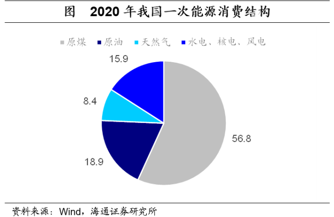 中國的能源結構仍然以化石能源為主,急需加強清潔能源發展。從一次能源消費結構來看,我國煤炭、石油、天然氣等化石能源的占比高達84.1%,非化石能源占比僅為15.9%,相較2025年20%的要求還有一定距離,而相比2060年80%的目標還相去甚遠。從最終能源消費結構來看,化石能源占比也依然高達61.9%,電能占比僅為26.9%,而且從發電方式來看,高碳排放的火電仍是我國主要發電方式,占比高達70.7%。氫能作為綠色、清潔、高效的二次能源,可優化現有能源結構、有效降低二氧化碳排放量,改善環境問題,助力“雙碳”目標的實現。
