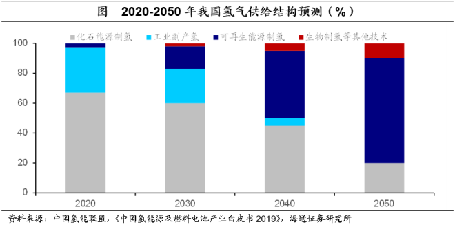 首先是提高綠氫占比。根據《中國氫能源及燃料電池產業白皮書2019》,預計到2050年nian,隨sui著zhe我wo國guo能neng源yuan結jie構gou轉zhuan型xing,從cong以yi化hua石shi能neng源yuan為wei主zhu轉zhuan為wei以yi可ke再zai生sheng能neng源yuan為wei主zhu的de能neng源yuan消xiao費fei結jie構gou,通tong過guo可ke再zai生sheng能neng源yuan電dian解jie水shui製zhi氫qing將jiang成cheng為wei主zhu要yao的de氫qing氣qi來lai源yuan,預yu計ji綠lv氫qing占zhan比bi達da到dao70%以上,高排放的灰氫占比將逐步縮減至20%。在2020年考慮“雙碳”目標後,這一目標也再次更新,中國氫能聯盟專家委員會主任餘卓平提到,我國可再生能源製氫產量在2030年和2060年要分別達到500萬噸和1億噸,占比分別為13.5%和76.9%。