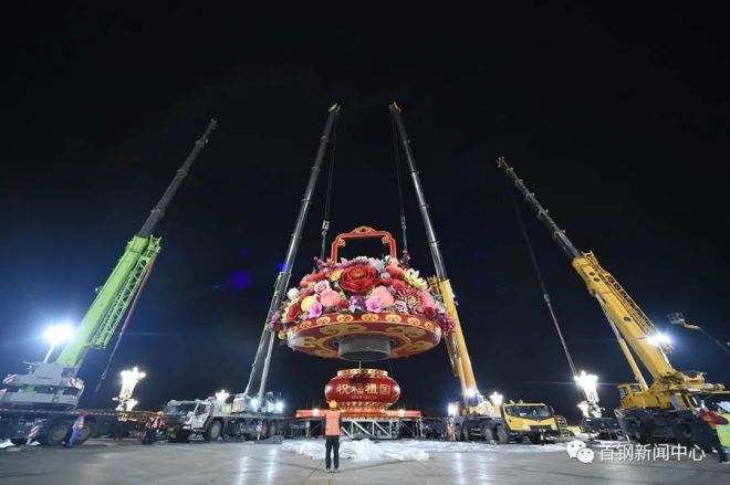 喜迎二十大 | 18米高245噸重國慶主題花籃亮相天安門,首鋼連續15年承擔製作安裝任務