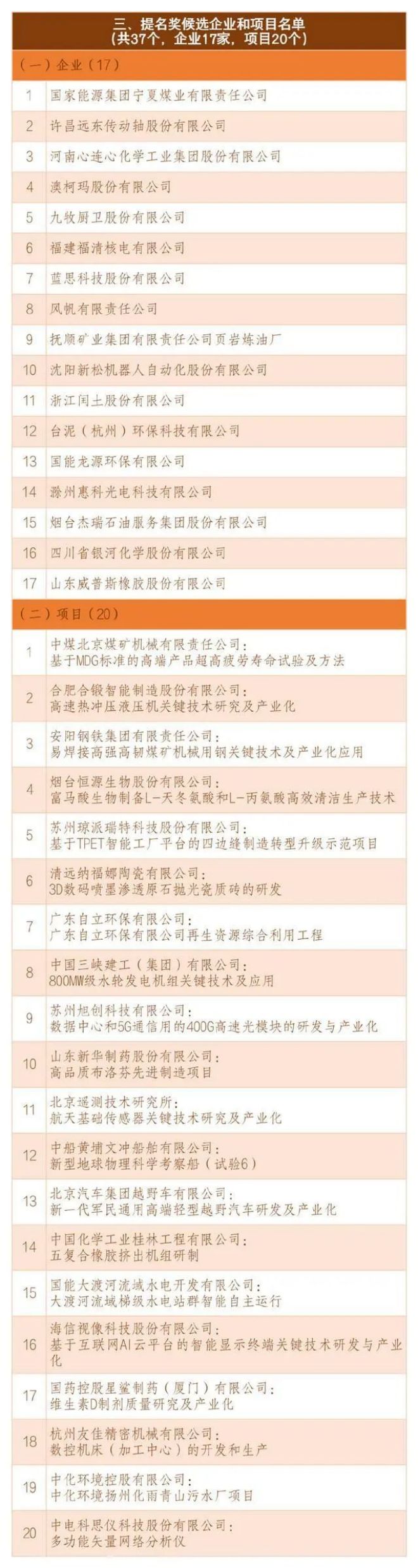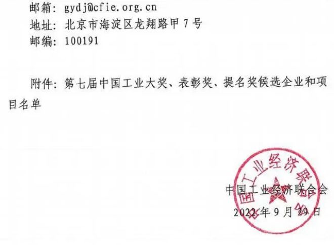 近日,第七屆中國工業大獎、表彰獎、提名獎候選企業和項目名單進行公示。根據第七屆中國工業大獎實施工作安排,按照《中國工業大獎實施管理辦法》的規定,在企業自願申報基礎上,經全國性工業行業聯合會(協會)和省(區)市工業經濟聯合會(協會)推薦、資格審查、行業評審、綜合評審、中國工業大獎工作委員會審核、實地考察、國家相關部門征求意見及中國工業大獎審定委審定等環節,產生了第七屆中國工業大獎候選企業19家、項目19個,第七屆中國工業大獎表彰獎候選企業26家、項目22個,第七屆中國工業大獎提名獎候選企業17家、項目20個。