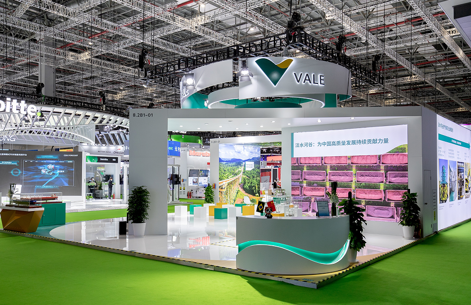 《中國冶金報》記者來到淡水河穀位於國家會展中心(上海)8.2號館服務貿易區B1-01展位,看到的是一片“綠意盎然”的景象,這也與淡水河穀今年參展的主題完美契合。